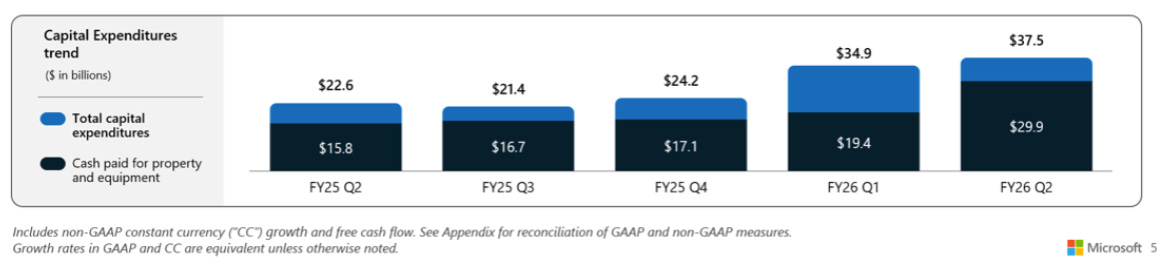 During the quarter, Microsoft spent big time on CapEx, their highest ever quarterly outlay at $37.5 billion. This resulted in the company onboarding 1GW of compute during the quarter: